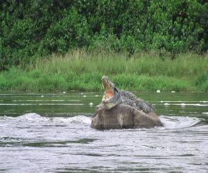 viewing large Nile Crocodiles , Hippos at a close range. The boat trip ends at
